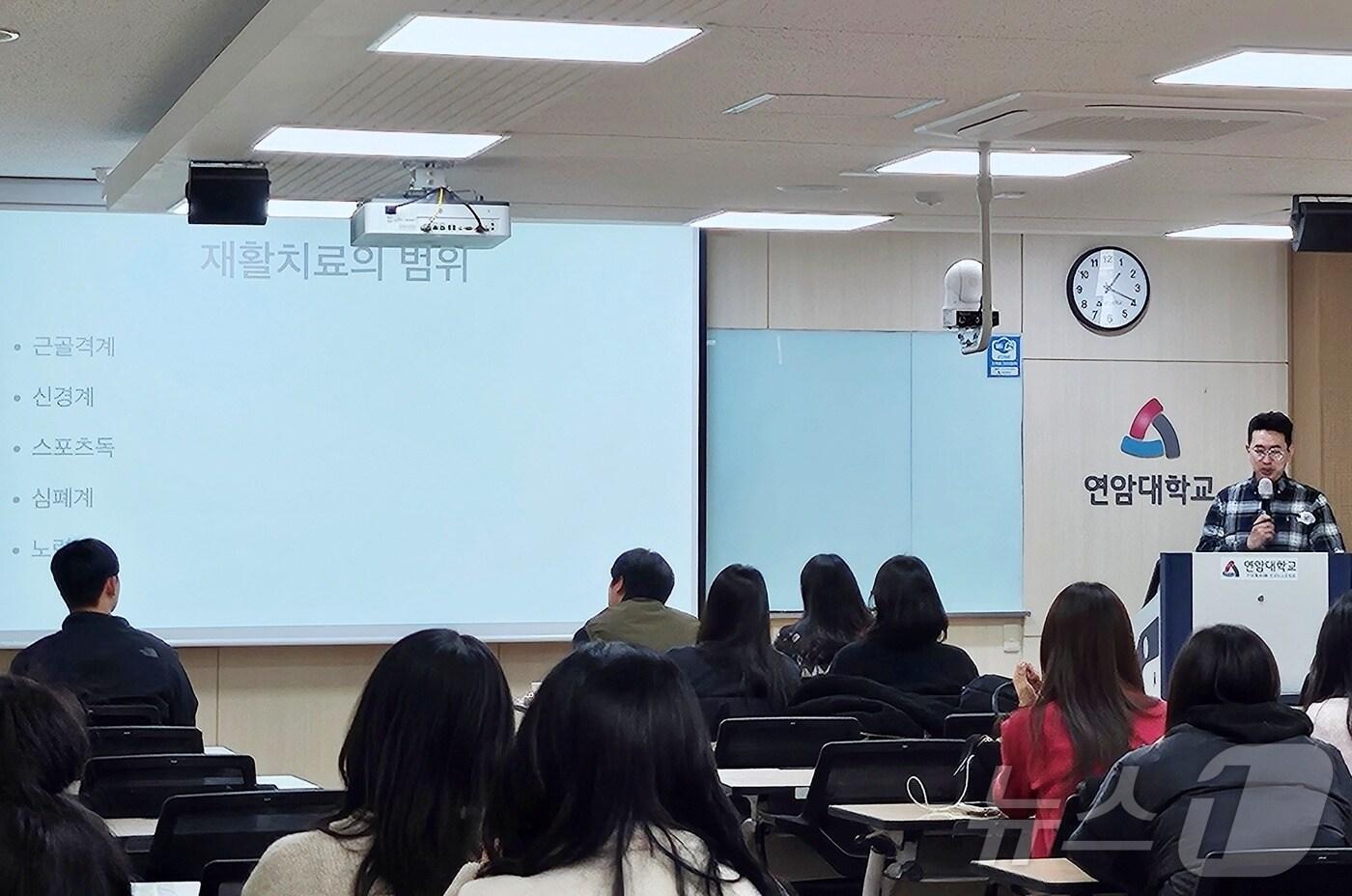 나상민 반려동물통합의학연구소장, 겸임교수 초빙연암대학교는 6일 나상민 한국반려동물통합의학연구소장을 초빙해 동물재활피트니스 과정을 진행했다(학교 제공). ⓒ 뉴스1관련 키워드이슈동물최서윤 동물문화전문기자 베트남 간 경복대·국경없는수의사회…'K-반려동물 복지' 전파해건국대 반려동물·사회복지 융합과정, 2월7일 입학설명회·세미나 개최관련 기사베트남 간 경복대·국경없는수의사회…'K-반려동물 복지' 전파해100년 넘는 영양 노하우…뉴트리나 건강백서, 퍼스트 브랜드 대상"불필요한 고통 줄여주세요"…'동물실험계획서 작성 길라잡이' 발간송미령 장관 "동물복지 수준 높아질수록 생산자·소비자 모두 도움""사람·동물 행복한 사회"…농림축산식품부, 국민적 공감대 만든다