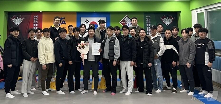 왼쪽에서 7번째부터 김종덕, 신창호 교수 (우송정보대학 제공.재판매 및 DB금지)/뉴스1박찬수 기자 대전대 홍용근 교수, 첨단분야 혁신융합대학사업 유공 장관상금산 랜드마크 '월영산 출렁다리' 방문객 편의 대폭 강화