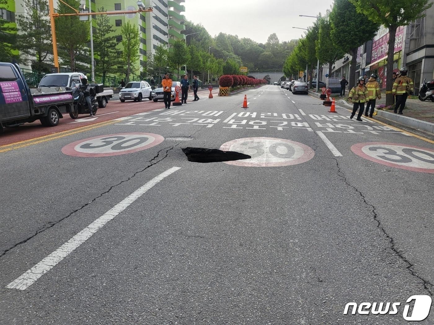 광주 광산구 도로에 싱크홀이 발생해 행정당국이 도로 통제를 하고 있다. /뉴스1 DB