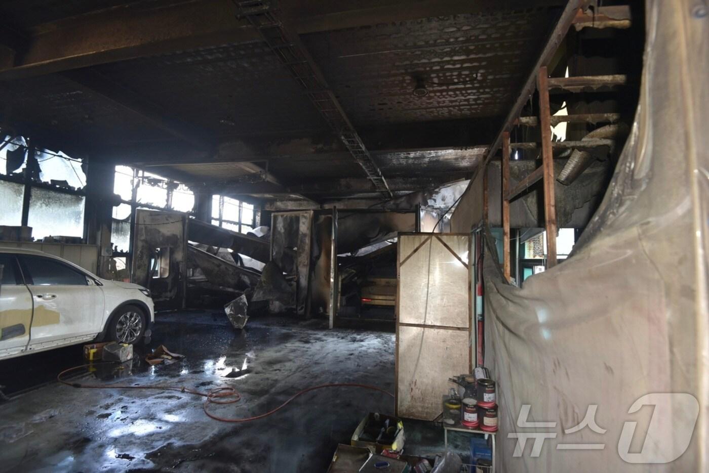 1일 오전 10시 20분께 대전 유성구 계산동의 3층짜리 카센터 건물 2층에서 불이 나 45분만에 진화됐다. 사진은 불이 난 카센터 화재 현장. (대전소방본부 제공. 재판매 및 DB금지) /뉴스1