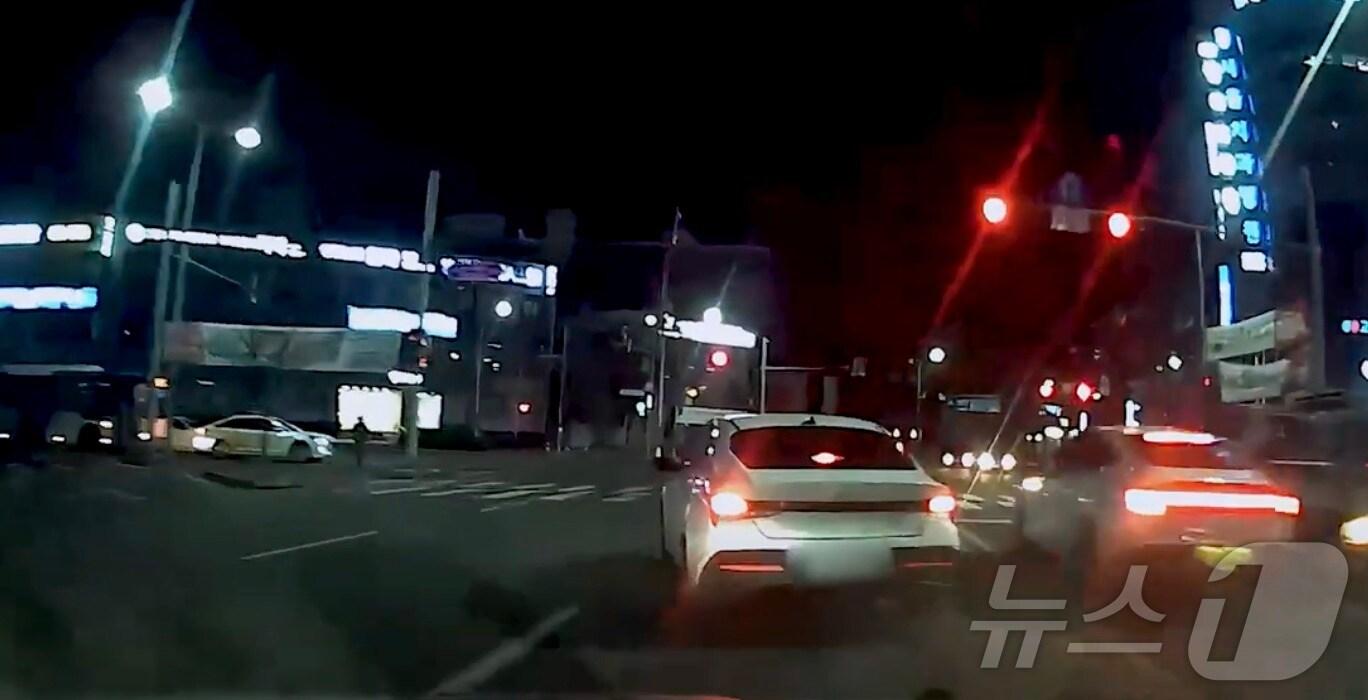 경찰과 공조 추적 렌터카 직원 치고 달아나기도대전에서 운전면허증를 도용해 차량을 빌린 뒤 도심에서 난폭운전을 벌인 10대 4명이 현행범으로 체포됐다. 사진은 도주중인 차량. (대전경찰청 제공. 재판매 및 DB금지) /뉴스1