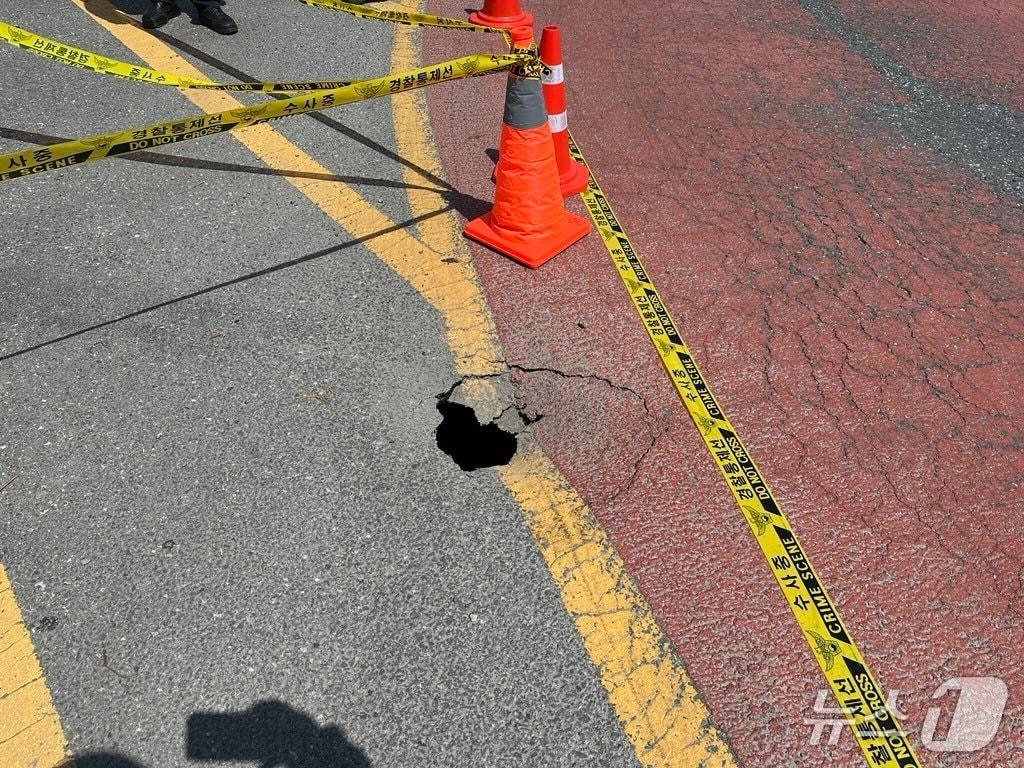 11일 낮 12시 41분께 대전 서구 월평동 은뜰삼거리 인근 도로에서 싱크홀이 발생했다. (대전소방본부 제공. 재판매 및 DB금지) /뉴스1
