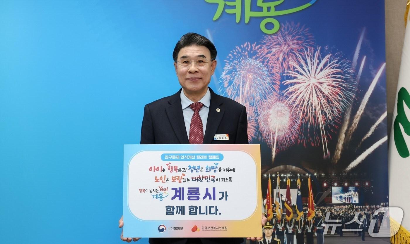 이응우 계룡시장이 ‘인구문제 인식개선 릴레이 캠페인’을 하고 있다. (계룡시 제공. 재판매 및 DB금지) /뉴스1