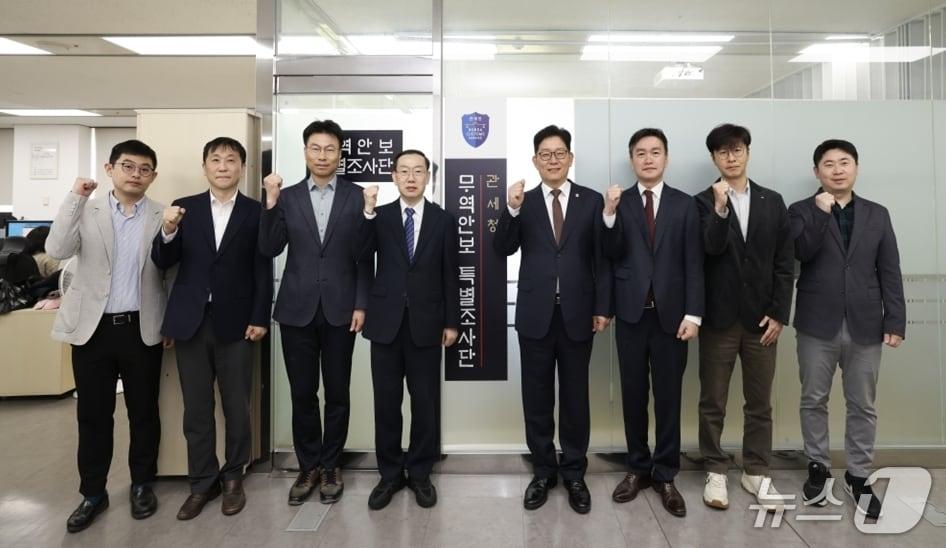 무역안보특조단 발족…미국 고관세로 우회수출 증가 우려최근 5년간 총 176건, 4675억 규모 불법적수출 행위 적발관세청 무역안보 특별조사단 발족 모습. 왼쪽 네 번째부터 이명구 관세청 차장, 고광효 관세청장, 이종욱 조사국장(관세청 제공.재판매 및 DB금지)/뉴스1박찬수 기자 급여 미지급 대덕대 노조 쟁의권 확보…재단 이사회 13일 개최경산 산불, 운전 중 담뱃불 투기 추정…2022년 울진산불도 같은 원인