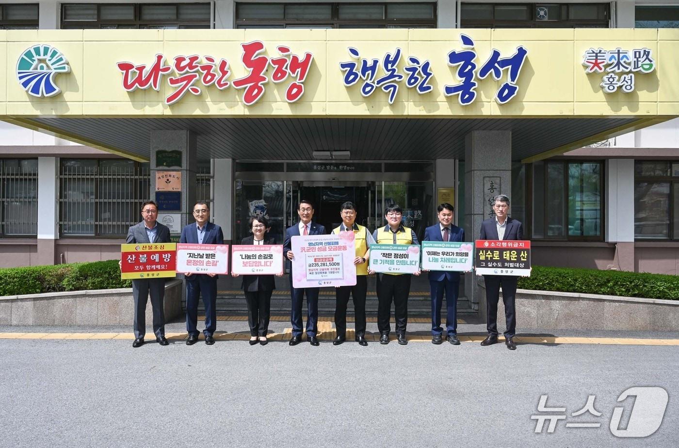 홍성군이 영남지역 산불 피해 주민돕기 성금 2억3000여만 원을 전달하기 전 기념촬영을 하고 있다.(홍성군 제공. 재판매 및 DB금지)/뉴스1