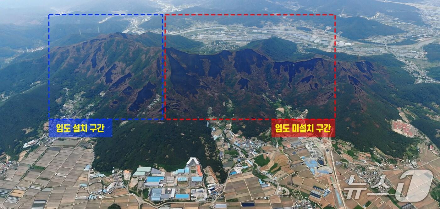 2022년 밀양 산불 임도 설치 지역 및 미설치 지역 비교 (산림청 제공.재판매 및 DB금지)/뉴스1