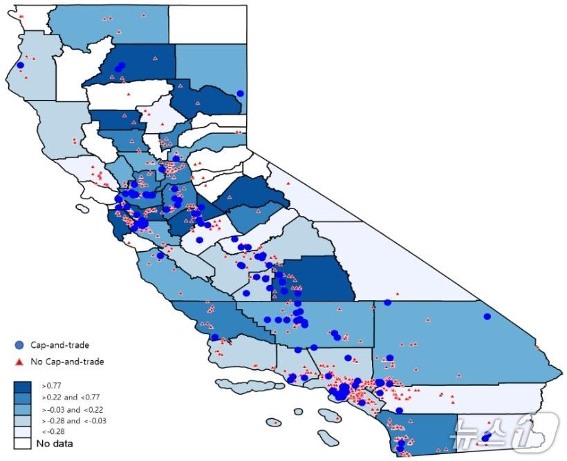 KAIST·미네소타주립대 공동연구팀 미국 캘리포니아주 배출권 거래의 영향을 받는 제조 시설과 카운티의 탄소 배출 변화(KAIST 제공) /뉴스1김종서 기자 검찰 행정관이 과·오납 벌금 자기 계좌로 빼돌려…검찰 수사대전교육청, 11기 열린기자단 학생·학부모 등 20명 위촉