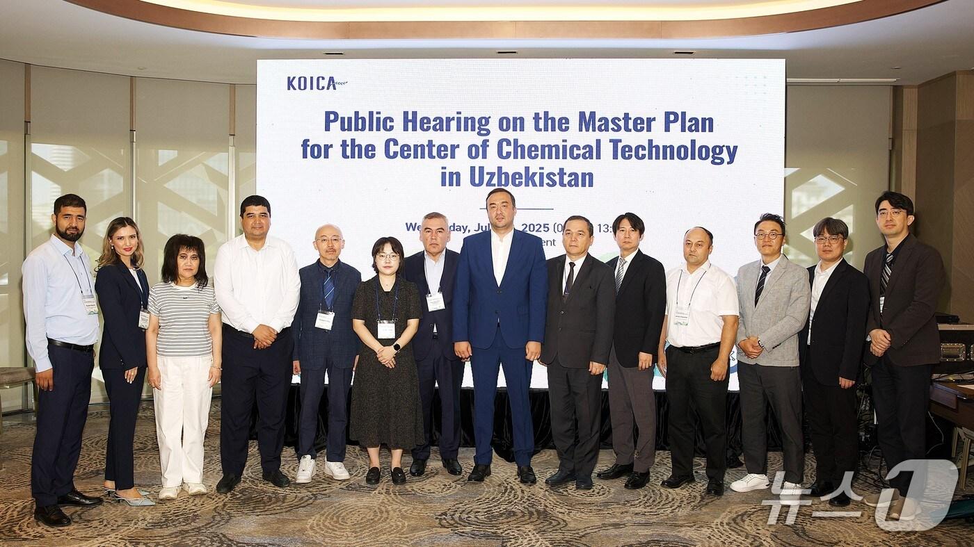 우즈벡 국가화학산업 발전을 위한 화학연구원 설립 역량강화사업 마스터플랜 공청회에 참석한 관계자들이 기념사진을 촬영하고 있다.(화학연 제공) /뉴스1
