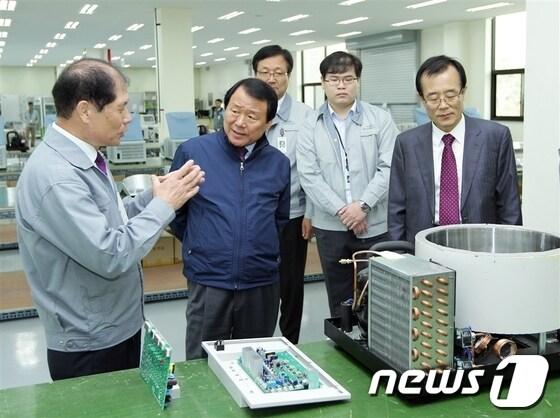 옥상텃밭을 가꾼 (주)비전과학 회사를 둘러보고 있는 염시장© News1