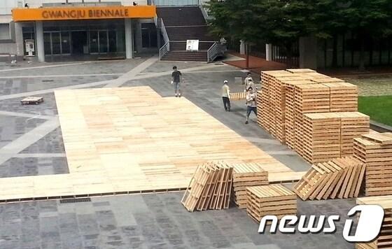 광주비엔날레 전시관 야외 광장에 조성될 가든 디자인 공사 장면© News1