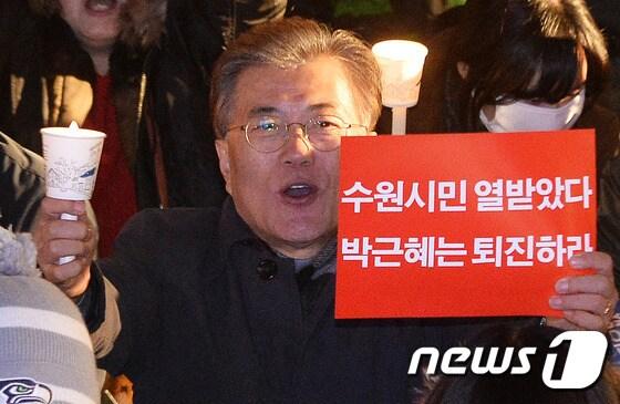 문재인 더불어민주당 전 대표가 25일 오후 경기도 수원시 팔달구 올림픽공원에서 열린 박근혜 퇴진 수원시민 촛불문화제에서 구호를 외치고 있다. 2016.11.25/뉴스1 ⓒ News1 이재명 기자박중재 기자 "'극한 기후' 예비군 훈련, 연기하거나 실내 훈련으로 전환해야"강기정, 李대통령 '타운홀미팅' 후폭풍에 "억울하고 섭섭했지만…"