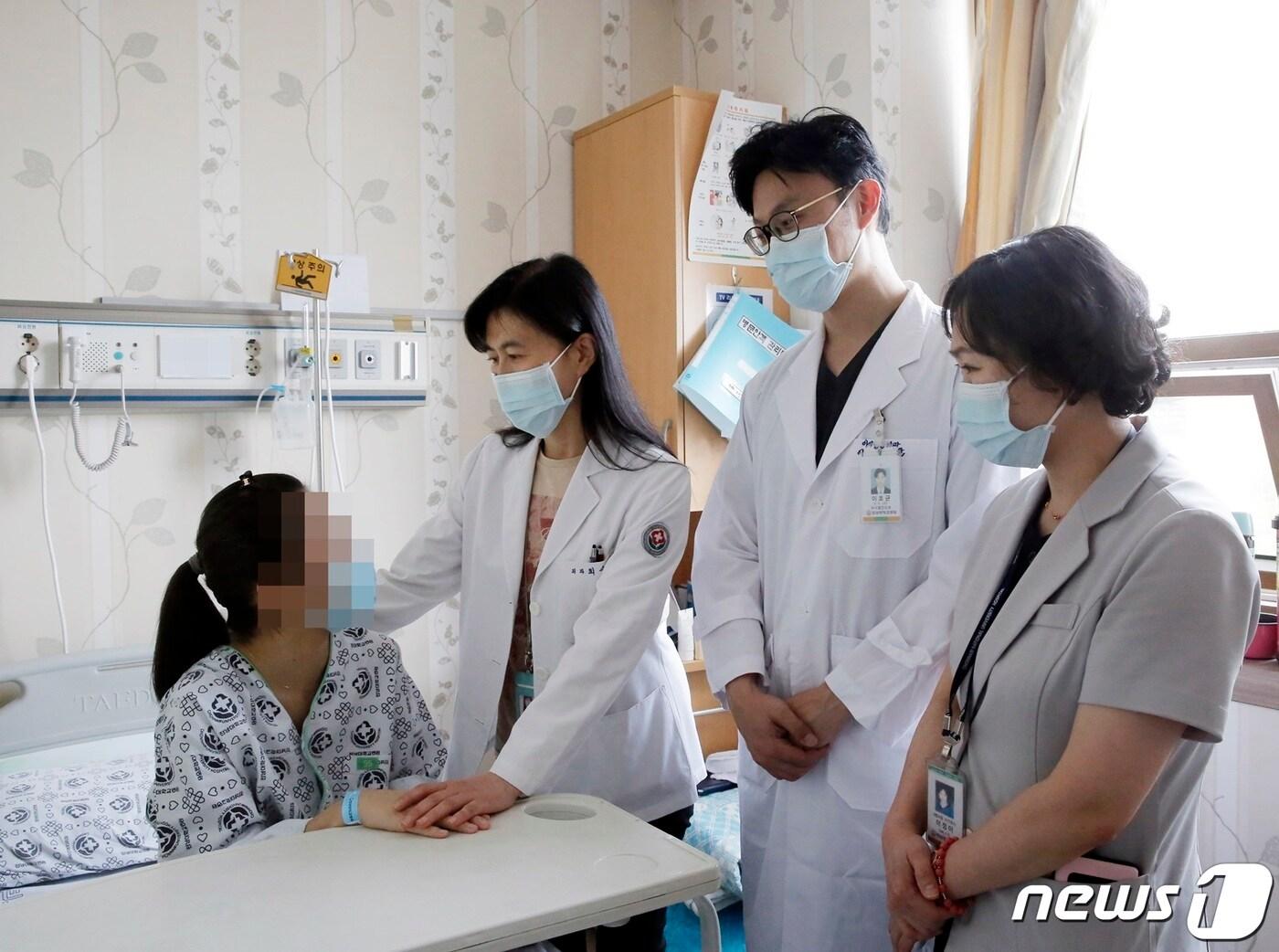 최수진나 교수 20대 여성에 600번째 수술 장기이식센터 의료진·의술 우수성 입증최수진나 전남대병원 장기이식센터장(왼쪽 두 번째)과 의료진이 신장이식 600번째 수술을 받고 순조롭게 회복 중인 환자를 찾아와 격려하고 있다.(전남대병원 제공02019.4.25/뉴스1 ⓒ News1
