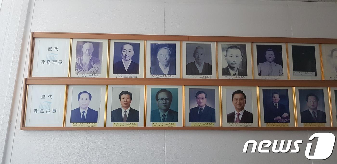 "조선총독부 임명한 면장 게시는 역사 의식 부족" 진도읍사무소 "아픈 역사도 역사, 철거 계획 없다"전남 진도군 읍사무소 회의실에 걸려 있는 일제강점기 시절 역대 면장들 사진. /뉴스1
