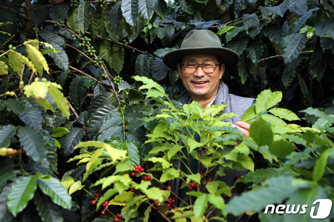 커피나무에 둘러싸인 담양커피농장 임영주 대표. /ⓒ News1 박영래 기자