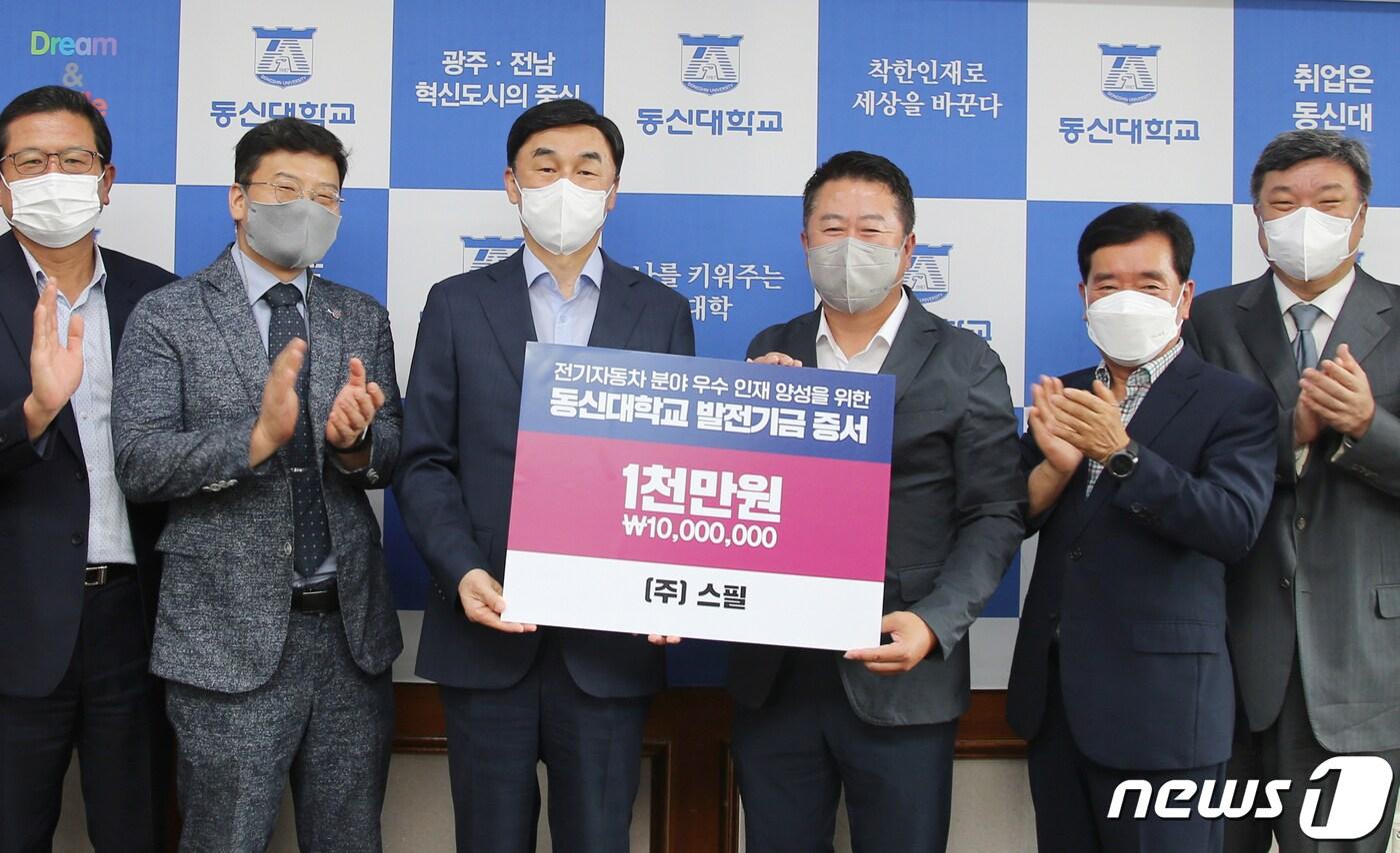 동신대학교는 전기자동차 급속충전기 전문업체인 ㈜스필이 전기자동차 분야 우수인재 육성을 위한 장학금 1000만원을 기부했다고 17일 밝혔다. ⓒ News1박영래 기자 지난해 12월 광주지역 수출, 전년 동월 대비 27.6% 증가신정훈 "광주·전남 통합에 파격 지원…소중한 물적 토대"
