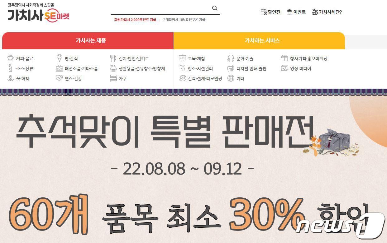 광주시사회적경제쇼핑몰 '가치사SE' 마켓 홈페이지 캡처./뉴스1 ⓒ News1 박준배 기자