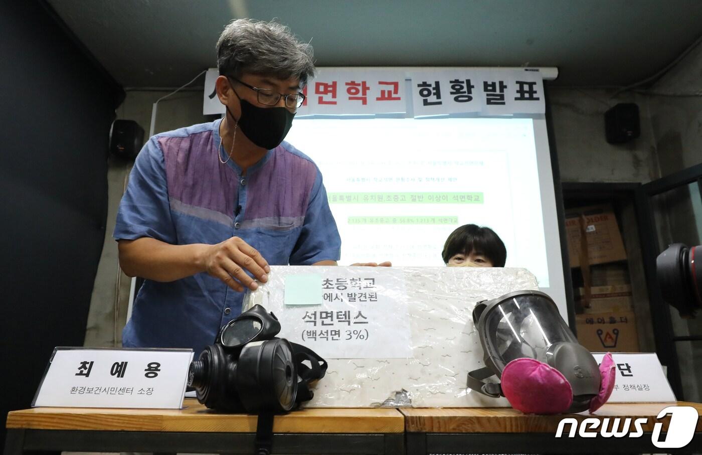 광주환경운동연합 조사…석면 학교 광주 39%·전남 59%17일 서울 종로구 서울환경운동연합에서 석면으로부터 안전한 학교만들기 정책제안 기자회견이 열리고 있다. 이날 기자회견에서 최예용 환경보건시민센터 소장 등은 여름방학 기간 석면 철거 진행 중인 63개 학교 명단과 56.8%에 달하는 명단 보고서를 발표했다. 2022.8.17/뉴스1 ⓒ News1 송원영 기자최성국 기자 [오늘의 날씨] 광주·전남(17일, 토)…아침 안개, 낮부터 기온 상승국립순천대, 목포대 통합 투표 '찬성'…김영록 "대승적 결단" 환영(종합)