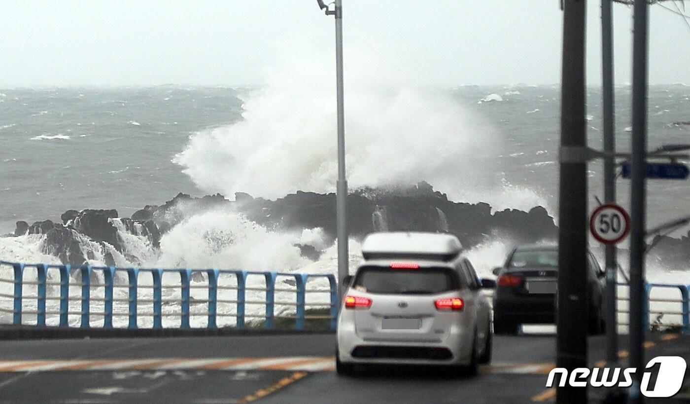 6일 오전 제11호 태풍 '힌남노'가 제주를 지나간 이후에도 제주시 용담 해안도로에 높은 파도가 치고 있다. 2022.9.6/뉴스1 ⓒ News1 고동명 기자