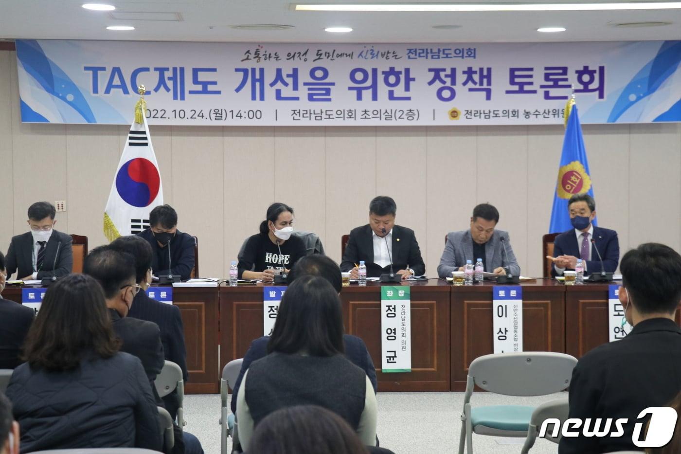 전남도의회 농수산위원회가 24일 도의회 초의실에서 'TAC제도 개선을 위한 정책토론회를 개최하고 있다. (전남도의회 제공)/뉴스1