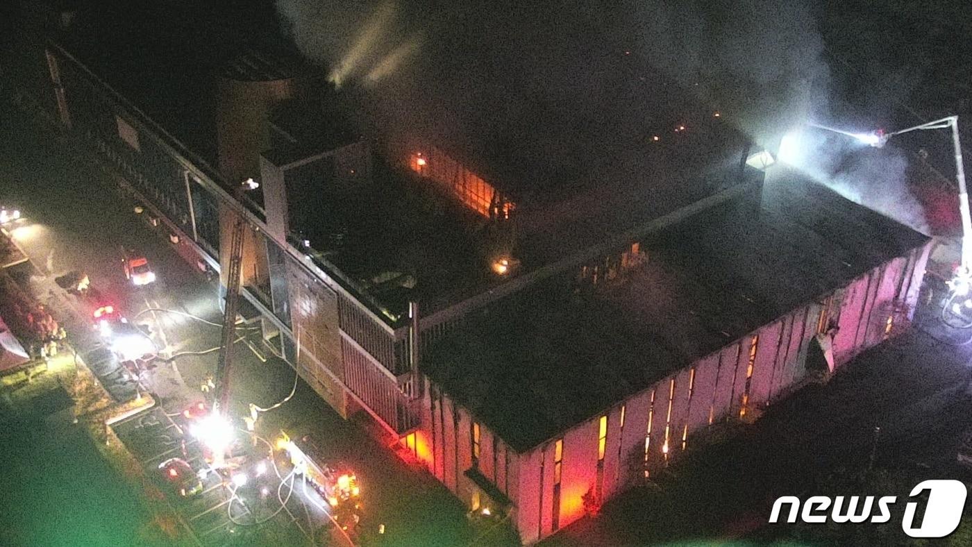 민간업체 위탁 검토…"저장소 가동 장기간 소요"11일 오후 7시52분쯤 전남 순천시 주암면 소재 자원순환센터 연료화시설동에서 불이 나 소방당국이 진화 작업을 벌이고 있다.(순천소방서 제공)2022.11.13/뉴스1 ⓒ News1