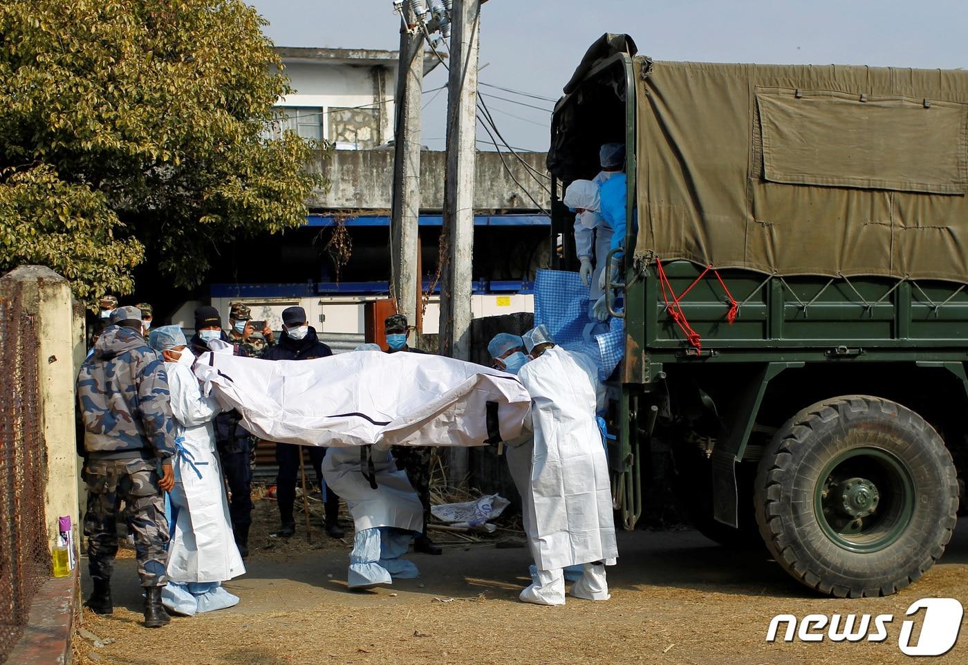 17일(현지시간) 네팔 포카라에서 예티 항공 추락 사고 희생자의 시신이 수도 카트만두로 이송되고 있다. ⓒ 로이터=뉴스1 ⓒ News1 권진영 기자