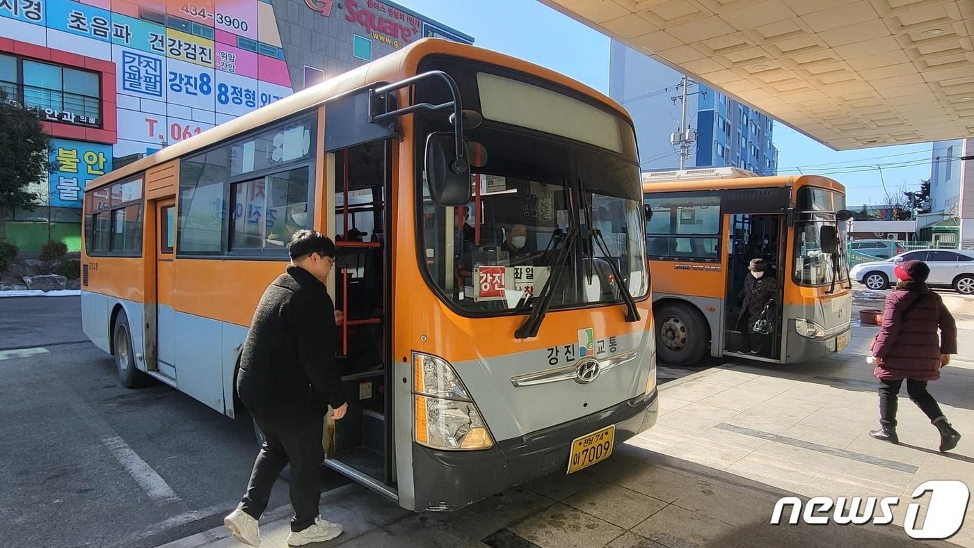 한 청소년이 강진군 농어촌버스를 탑승하고 있다.(강진군 제공)/뉴스1