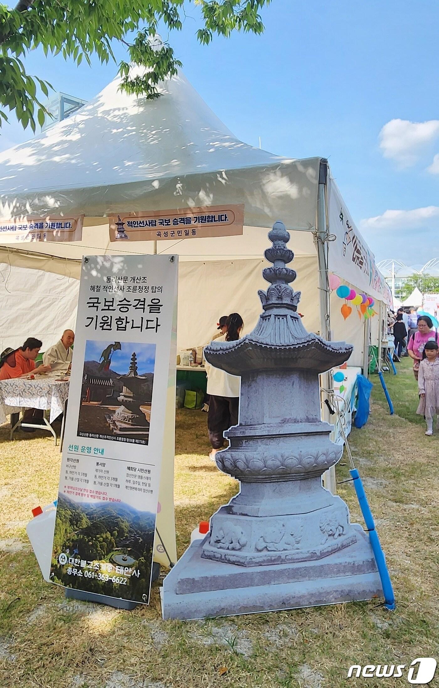 1963년 국가지정문화재 보물 지정곡성 섬진강 기차마을 장미축제장 안에 설치된 국가지정문화재 보물 제273호인 '태안사 적인선사탑' 모형(곡성군 제공)2023.5.25/ 관련 키워드곡성군'태안사 적인선사탑' 국보 승격 기원 홍보 전개서순규 기자 곡성군, 새해 첫날부터 군내버스 무료…관광객도 포함광양시의회, 지역 송전선로 건설사업 전면 백지화 촉구