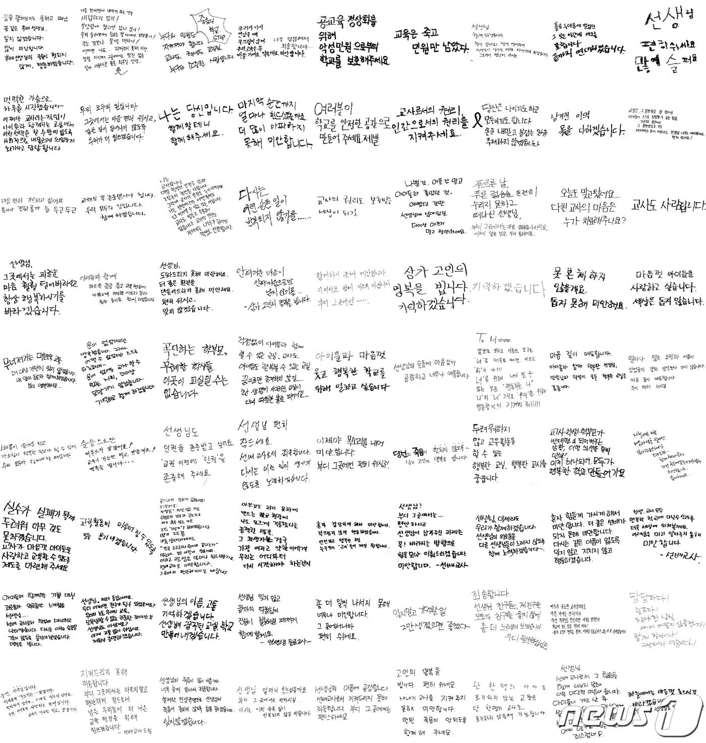 "학교에서 오히려 교권보호위원회 개최 말리기도"광주 교육단체들 "교권 정책 실효성 높이고 전수조사도 필요"광주 초등교사들이 서울 서초구 서이초 교사의 죽음을 애도하며 작성한 추모글.(광주실천교육교사 모임 제공)2023.7.23./뉴스1관련 키워드서이초광주교권서충섭 기자 광주 구청장·시의원도 불법당원 모집?…민주당, 징계 절차 착수김민석·정청래, 왜 '경쟁적' 호남행?…"지선 승리 우선인데 텃밭만 챙겨"관련 기사악성 학교 민원인 대응책 [박남기의 미래 나침반]광주교사노조 "조합원 설문조사 결과, 65% '정당 가입' 의사"교권 5법에도 현장 변화 '미미'…"행·재정 지원 뒷받침돼야"