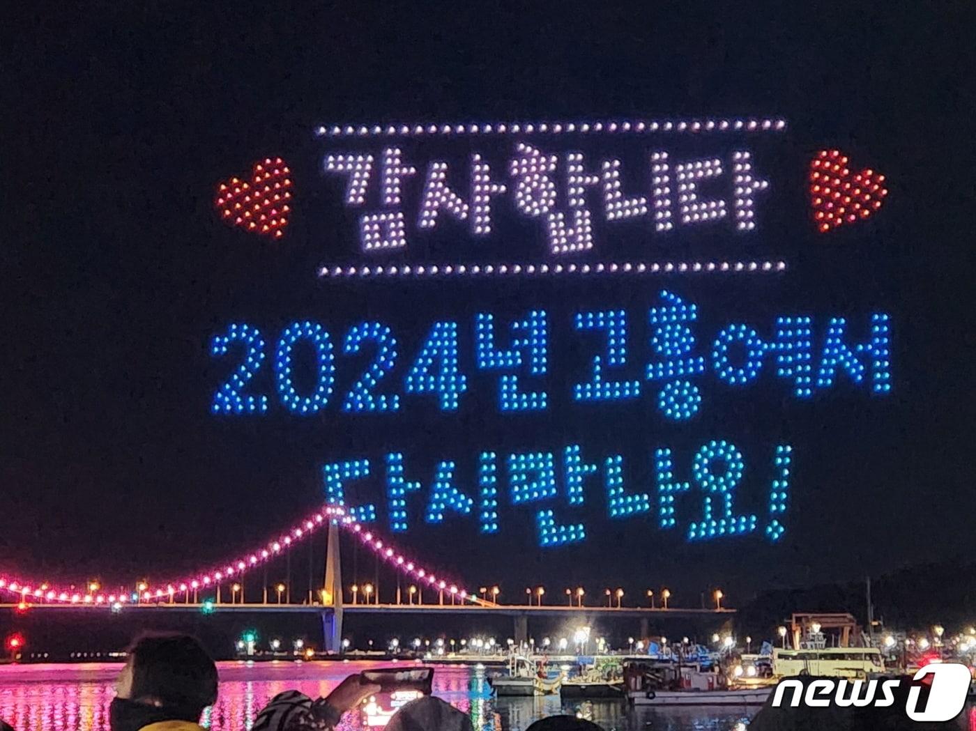 4월~내년 1월 총 38회 불꽃쇼 등 공연다채고흥 녹동항 드론쇼.(고흥군 제공)2024.2.23/뉴스1관련 키워드고흥녹동항드론쇼관련 기사광복 80주년 기념…고흥 녹동항서 16일 700대 드론쇼'2025대 역대급 드론쇼' 열린다…7일 고흥 녹동항 일원밤하늘 수놓을 700대 드론쇼…25일 고흥군청 앞 광장서 공연'고흥 녹동항 드론쇼' 12일 개최…2025대 밤하늘 수놓는다'산불피해 애도' 고흥군 녹동항 드론쇼 5일→12일로 연기
