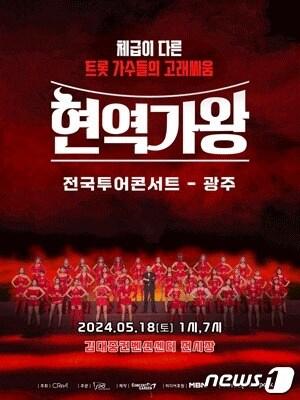 "초상집 와서 잔치 벌이냐" 비난현역가왕 광주 콘서트 포스터./뉴스1DB 관련 키워드현역가왕광주5.18이수민 기자 광주 5개 구청장 "행정통합 적극 동참…자치권 강화해야"(종합)"MBTI 과몰입러 모여라" 광주 서빛마루도서관 'MBTI 독서존' 운영
