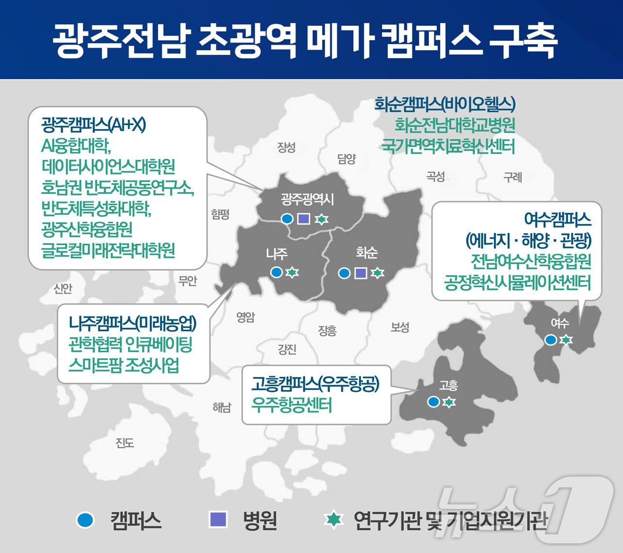 광주전남 초광역 메가캠퍼스 추진, 지역균형발전 도모전남대가 글로컬대학30을 겨냥한 광주전남 초광역 메가캠퍼스 구상을 내놨다.(전남대 제공)2024.5.26./뉴스1관련 키워드전남대글로컬서충섭 기자 주말 광주·전남 지방선거 출마자들 대거 출판기념회이정선 광주교육감 17일 조선대서 출판기념회관련 기사국립순천대, 목포대 통합 투표 '찬성'…김영록 "대승적 결단" 환영(종합)[인사] 전라남도목포대 정시모집 경쟁률 7.2대1…최근 10년 중 최고신년사로 본 전남의 키워드는…"과학으로 먹고사는 전남"[신년사] 김영록 지사 "과학으로 먹고사는 전남 시대 열겠다"