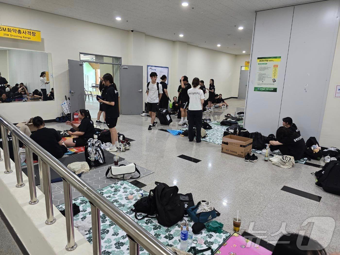 선수들 복도에서 대기하거나 연습 이재태 전남도의원 "개보수 시급"제54회 봉황기 전국사격대회에 참가한 선수들이 경기장이 비좁아 복도에서 출전을 준비중이거나 연습을 하고 있다.(이재태 전남도의원 제공)2024.8.22/뉴스1 ⓒ News1제54회 봉황기 전국사격대회가 열리고 있는 나주시 안창동 전라남도종합사격장의 결선사격장은 직원사무실과 겸해서 사용중이다.(이재태 전남도의원 제공)2024.8.22/뉴스1 ⓒ News1관련 키워드전남사격장봉황기사격대회반효진김예지나주박영래 기자 "광주전남특별시, 발전사업 인허가 권한 특별시장에 이양"광주은행, 설 맞아 중소기업 특별자금 1조원 지원