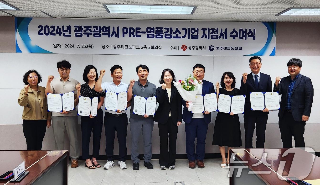 자금지원·맞춤형 프로그램 등 집중 지원지난 7월 25일 광주테크노파크에서 열린 '2024년 제8기 예비(PRE)-명품강소기업 지정 수여식' 참가자들이 기념촬영을 하고 있다.(광주시 제공)2024.7.25/뉴스1 관련 키워드광주시명품강소기업관련 기사광주시, 올해 명품강소기업 32개사 선정광주시, 성장 유망 '명품강소기업' 31개사 모집