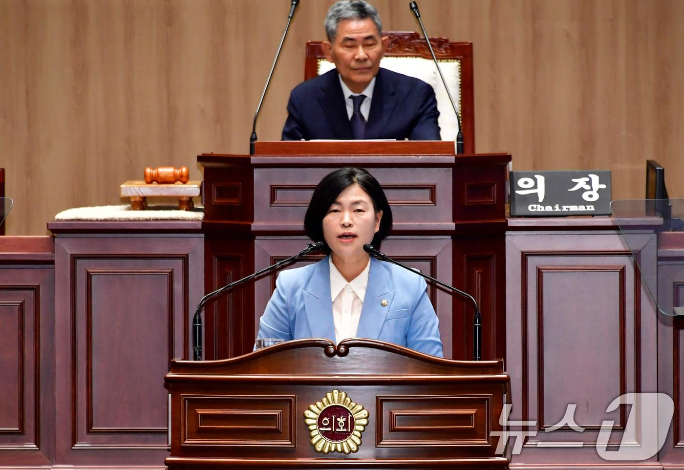 최지현 광주시의원이 15일 열린 제328회 임시회 제3차 본회의에서 시정 질문을 통해 '싱크홀 안전대책 부족'을 지적하고 있다.(광주시의회 제공)2024.10.15/뉴스1관련 키워드최지현광주시의원땅꺼짐