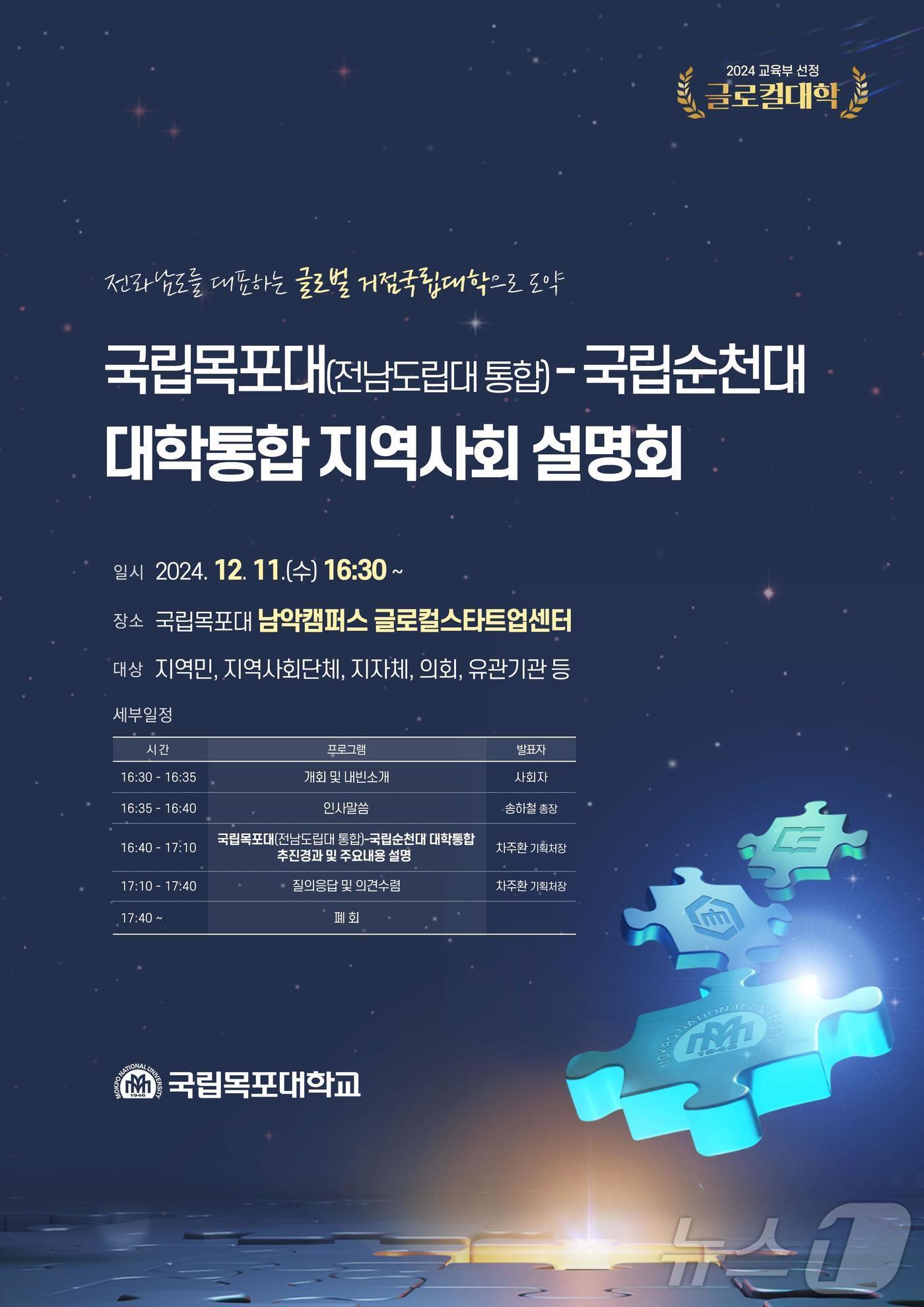 송하철 총장 "다양한 의견 수렴해 적극 반영"목포대(전남도립대 통합)-순천대 대학통합 지역사회 설명회 (목포대 제공)/뉴스1 관련 키워드목포대김태성 기자 "광주 군 공항 이전 합의문, 무안 지원책 구체성 결여"'도시, 예술로 물들다'…24일 무안거리문화예술제관련 기사전남도, 조선·해양산업 미래 혁신·상생 발전 다짐법제처, 행정입법 혁신 정책 공유…제도개선 공론의 장 마련[오늘의 주요일정] 광주·전남 (19일, 금)전남도 "통합 국립의대 2027년 개교…500병상 이상 대학병원 설립"경북도 "국립의대 설립은 선택 아닌 필수"…국회 공론화 가속