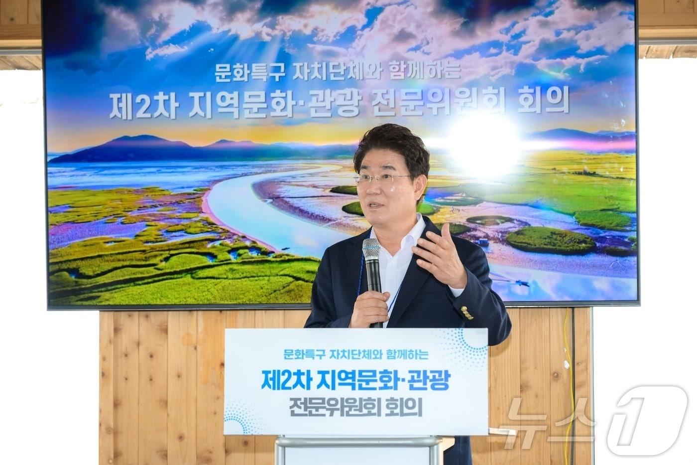 노관규 순천시장이 20일 순천만쉼터에서 열린 '지방시대위원회·문체부 공동 연수회'에서 발언을 하고 있다.(순천시 제공)2025.1.20/뉴스1