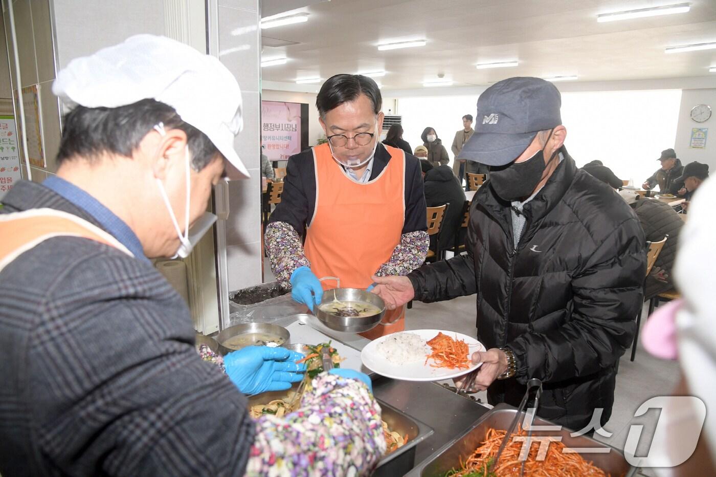 고광완 광주시 행정부시장이 21일 오전 들랑날랑 커뮤니티센터를 방문해 시설 현황을 점검한 후 배식 봉사를 하고 있다.(광주시 제공)2025.1.21/뉴스1