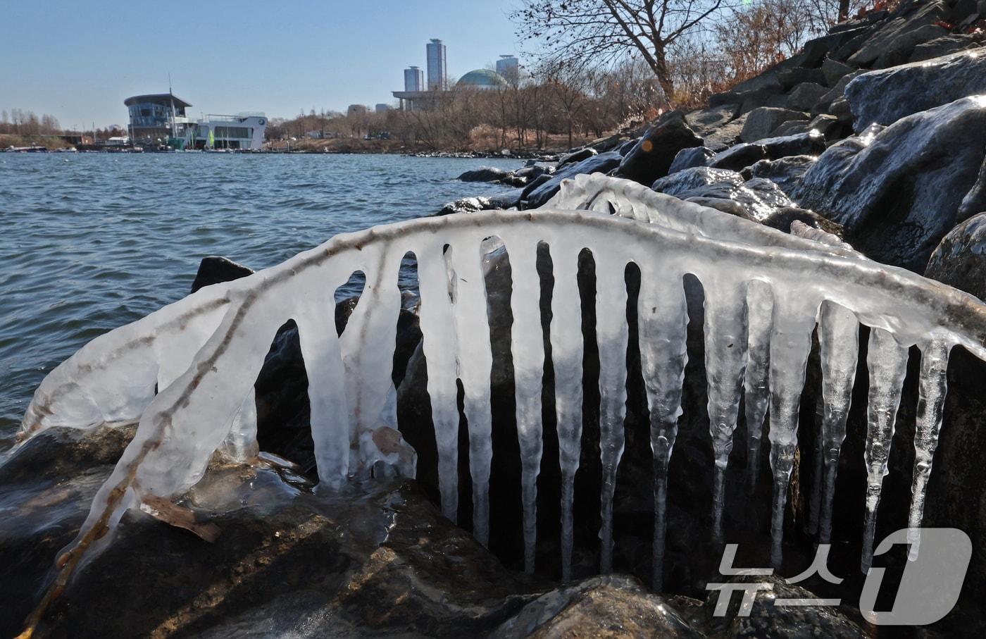 인근 35세대 물 공급 중단…하루 만에 복구 작업 완료전국 대부분 지역에 한파경보가 내려진 4일 오후 서울 영등포구 여의도 인근 한강에 고드름이 얼어있다. 2025.2.4/뉴스1 ⓒ News1 장수영 기자관련 키워드광주한파지하수배관불편
