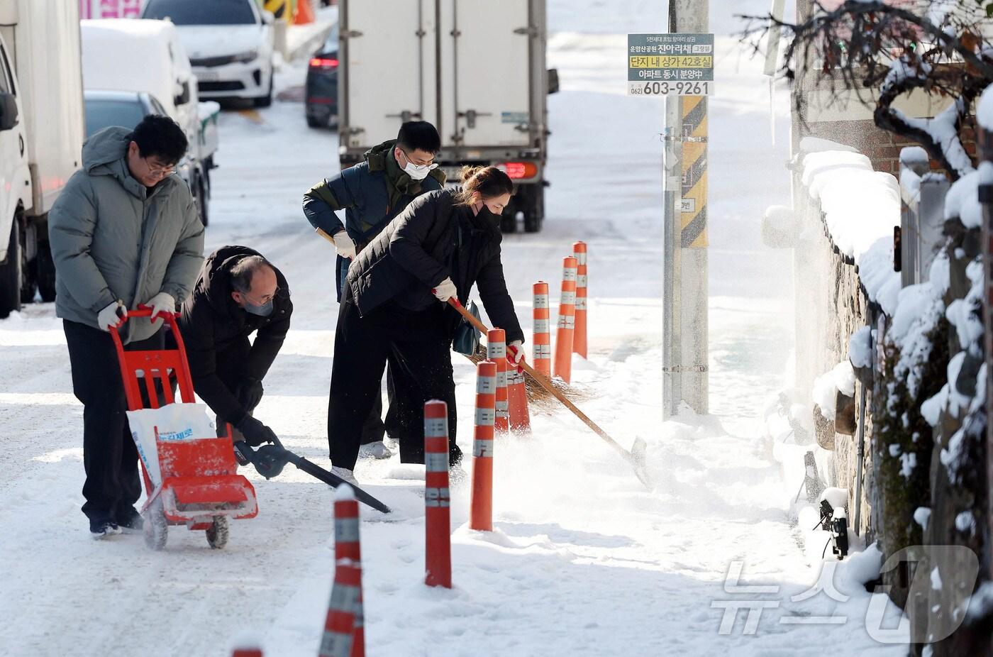 5일 오전 광주 북구 운암1동 행정복지센터 직원들이 주택가 이면도로에서 제설작업을 하고 있다.(광주 북구 제공)2025.2.5/뉴스1 관련 키워드대설특보광주전남해제전남 서해안 눈전원 기자 전남도, 국내외 관광객 유치 협력여행사 35곳 모집'연 5조 지원·재원 재분배' 정부 파격 인센티브에 광주·전남 통합 탄력관련 기사중부지방 중심 눈·비…낮 최고 '17도'로 포근 [오늘날씨]최고 25㎝ 폭설에 강풍까지…광주·전남 피해 잇따라(종합)강풍·대설·한파…빙판길 사고 등 전국 곳곳서 피해(종합)무안 전남도청 18.2㎝ 눈…전남 13개 시군 대설특보대설·강풍·한파에 전남 도로·항로·국립공원 잇단 통제