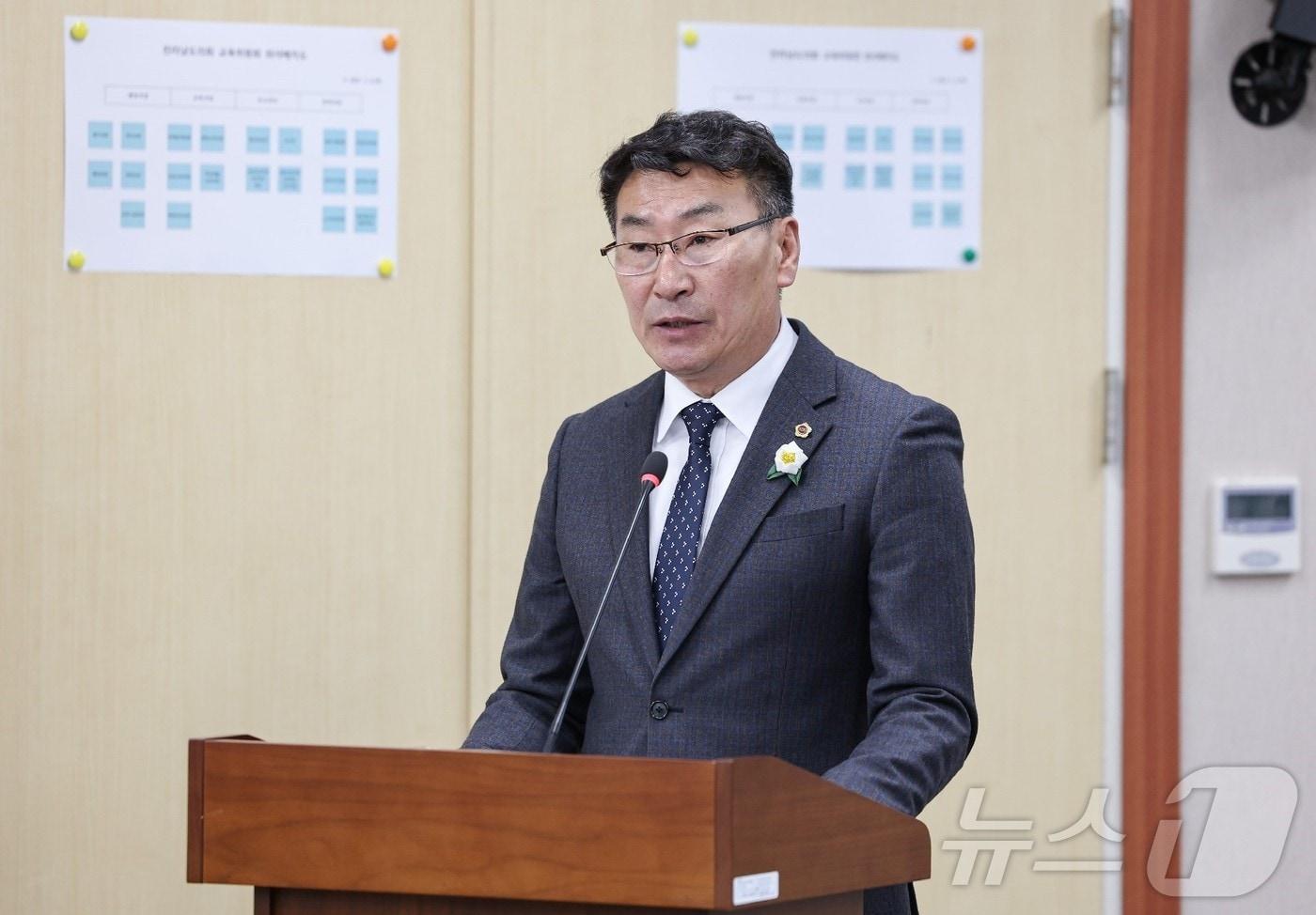 김재철 도의원 대표발의, 피해학생 보호조치와 사후관리 등 지원김재철 도의원이 조례안에 대한 제안설명을 하고 있다.(전남도의회 제공)/뉴스1관련 키워드전남도의회김재철 의원조영석 기자 GIST 교원 창업기업 ㈜오니온에이아이, CES 유망 AI 기술 선정진도 강강술래 예능보유자 박용순 씨, 전남도 문화상 수상관련 기사전남교육청 지난해 장기결석 학생 613명…49명 경찰 협조요청민주당 전남도당, 김원이 위원장 취임 후 첫 운영위 개최전남교육청,1년간 78명 징계…파면·해임 8명 중 7명 '성비위'전남도내 학생 통계에서 누락된 아동 1391명…안전 확인을보성 서재필 공원서 대원 김중채 선생 흉상 제막식
