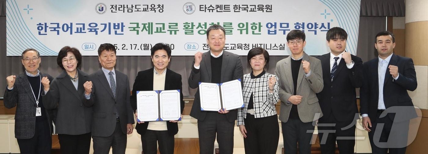 고려인 후손 義교육·직업교육 등 교육지원 협력 강화전남도교육청과 타슈켄트한국교육원 관계자들이 업무협약식을 마친 뒤 기념 촬영하고 있다.(전남교육청 제공)/뉴스1 관련 키워드전남도교육청조영석 기자 GIST 교원 창업기업 ㈜오니온에이아이, CES 유망 AI 기술 선정진도 강강술래 예능보유자 박용순 씨, 전남도 문화상 수상관련 기사"광주전남특별시, 부교육감 3명·통합특별교육교부금 정부 지원도"'광주·전남 행정통합' 19일 영암서 첫 도민공청회 개최[오늘의 주요일정] 광주·전남 (15일, 목)'광주전남특별시' 이전 임용 공무원, 종전 관할구역서 근무대전·충남서 좌초된 통합교육감…광주·전남서 첫 성사되나