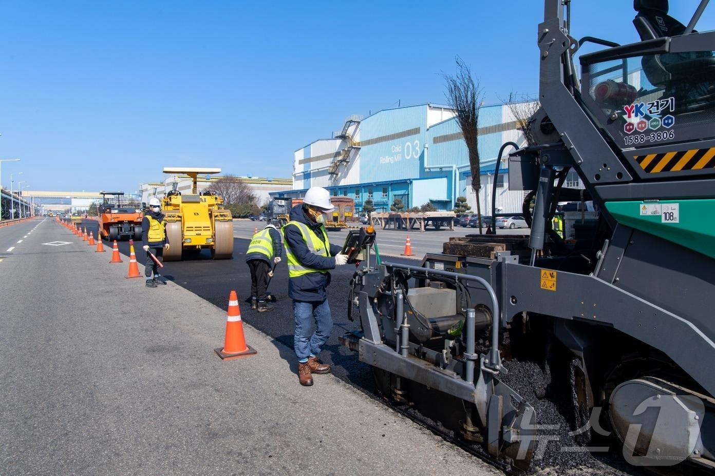 기존 천연골재 대비 도로 수명 2배 이상미세먼지·소음 감소 효과도포스코 광양제철소가 제강 슬래그를 골재로 이용한 아스팔트 콘크리트로 제철소 내 도로를 포장하고 있다.(광양제철소 제공)2025.2.17/ 관련 키워드포스코 광양제철소슬래그아스콘서순규 기자 "여수광양항을 북극항로 거점항만으로"…연구용역 착수광양 배알도 별빛야영장, 민간 운영자 공개입찰관련 기사포스코, '제철소 부산물' 철강 슬래그 자원화…"순환경제 기여"
