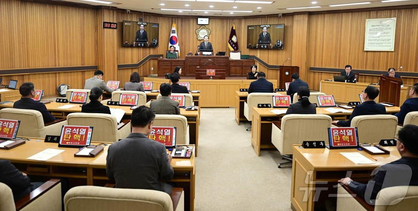보수단체, 광주 금남로 이어 22일 목포역 집회 예고목포시의회 "반헌법 세력 공간 있을 수 없어" 규탄목포시의회 회의 모습.(목포시의회 제공. 재판매 및 DB금지) 2025.2.19/뉴스1관련 키워드목포역탄핵 반대尹비상계엄선포전원 기자 '연 5조 지원·재원 재분배' 정부 파격 인센티브에 광주·전남 통합 탄력전남도, 장성·강진에 AI 데이터센터 구축
