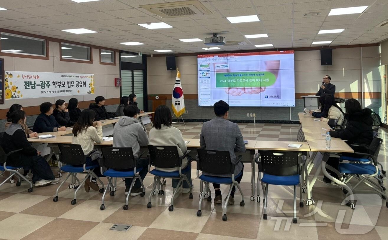 광주·전남 교육청, '학부모 업무 공유회'공동 개최완도교육청, 이주배경 가정 위한 '맘스(mom's)스쿨' 운영전남도교육청과 광주시교육청 관계자들이 '학부모 업무 공유회'를 갖고 있다. (전남교육청 제공)/뉴스1초등학력인정 성인문해교육 프로그램인 '훈민정음대학' 졸업생들이 기념사진을 찍고 있다.(전남교육청 제공)/뉴스1 2025학년도 구례학생연합회 상반기 역량강화 캠프(전남교육청 제공)/뉴스1. '배꽃한글교실' 수강생 모집 포스터 (전남교육청 제공)/뉴스1'마리오네트 공연' 장면 (전남교육청 제공)/뉴스1 겨울방학 프로그램에서 학생들이 체험 활동을 하고 있다(전남교육청 제공)/뉴스1.무안교육청과 독일 바이에른주 관계자들이 기념사진을 찍고 있다. (전남교육청 제공)/뉴스1'맘스(mom's)스쿨' 참여 학생과 학부모들이 기념사진을 찍고 있다. (전남교육청 제공)/뉴스1 담빛응급심리지원단의 '위기개입 역량강화 상담기법' 연수 장면(전남교육청 제공)/뉴스1 퇴직교직원 대상 '학교교육활동 지원 역량강화'연수 장면 (전남교육청 제공)/뉴스1'높은꿈자리농촌유학센터'의 '멋대로자연누리캠프' 수료식 장면 (전남교육청 제공)/뉴스1관련 키워드전남교육청조영석 기자 진도군, 민생회복 소비쿠폰 등 지역경제 3개 분야 '우수'서기웅 한국광기술원 제9대 원장 "글로벌 혁신기관 도약"관련 기사[인사] 전남 광양시청렴도 꼴찌인데 이미지는 '수상' 수준…전남교육청, 황당한 '황금 가지' 치장박주용 신임 경남교육청 부교육감 "모두가 신뢰하는 경남교육 만들겠다"광주교육감 출마 선언 오경미 "교육의 본질에 충실해야"[화보] 사진으로 본 전남교육 이모저모