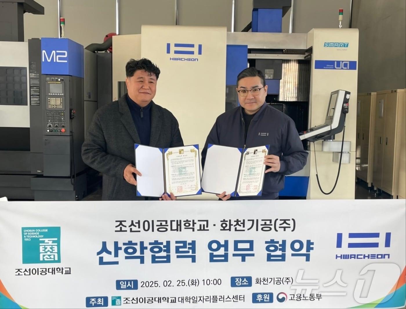 공작기계 제조 전문기업인 화천기공은 25일 조선이공대학교 대학일자리플러스센터와 산학협력 협약을 체결했다. 사진 왼쪽부터 김승영 조선이공대학교 대학일자리플러스센터장, 화천기공 김진만 경영지원본부 이사.관련 키워드화천기공조선이공대박영래 기자 지난해 12월 광주지역 수출, 전년 동월 대비 27.6% 증가신정훈 "광주·전남 통합에 파격 지원…소중한 물적 토대"