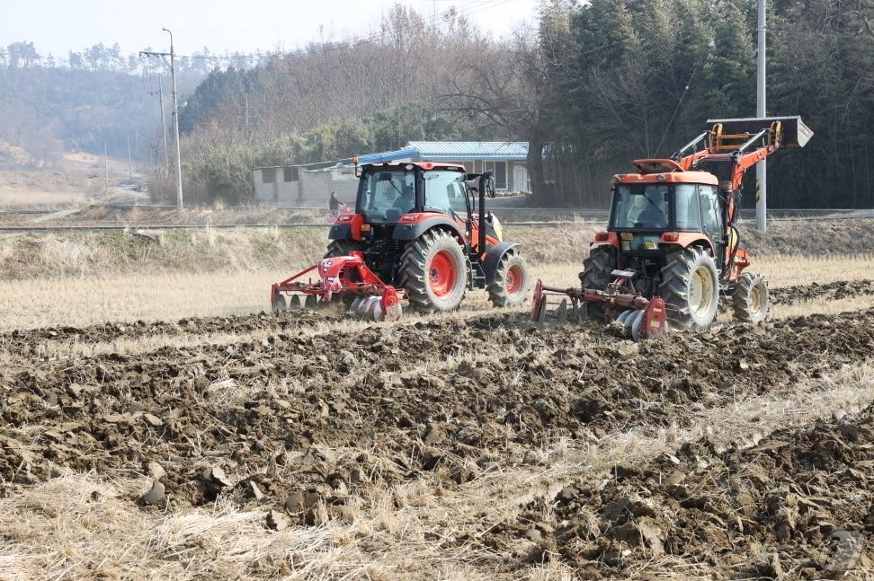전남 고흥군은 26일 대서면 서호마을에서 왕우렁이 확산을 막기 위해 논 깊이갈이 시연회를 진행하고 있다.(고흥군 제공. 재판매 및 DB 금지)2025.2.26/뉴스1관련 키워드고흥군왕우렁이깊이갈이시연