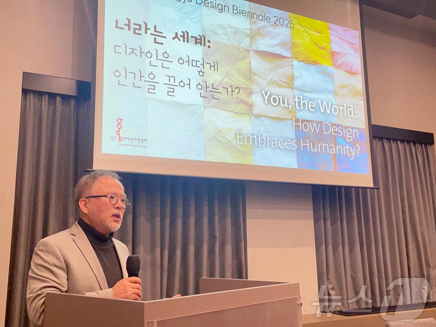 '세계,삶,모빌리티,미래' 포용디자인의 다각적 탐색제11회 광주디자인비엔날레 주제를 발표하고 있는 최수신 총감독 /뉴스1 ⓒ News1 김태성 기자관련 키워드제11회 광주디자인비엔날레김태성 기자 "현장 목소리 군정 반영"…김산 무안군수, 20~24일 군민과의 대화해남군 '친환경농업평가' 2년 연속 대상…전국 최대 4940㏊ 인증관련 기사문재인 전 대통령, 광주디자인비엔날레 관람…"해가갈 수록 발전"토스, '2025 광주디자인비엔날레' 참가…포용 디자인 전시광주디자인비엔날레 '전시주제 이미지' 발표…'포용디자인' 형상화제11회 광주디자인비엔날레 "'포용디자인'의 가치와 의미 전한다"
