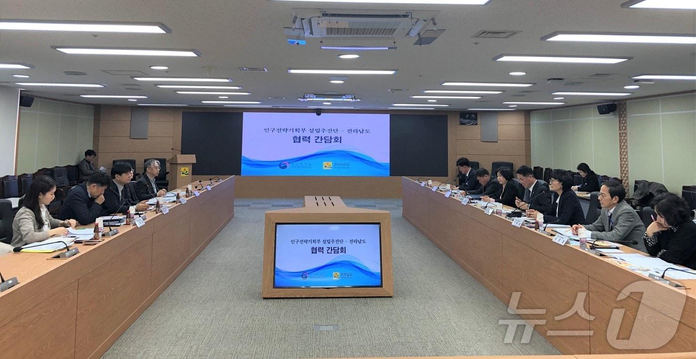 인구전략기획부 추진단 간담회서 저출생대응 국가책임 강화 요청인구전략기획부 설립추진단 간담회.(전남도 제공. 재판매 및 DB금지) 2025.3.20/뉴스1관련 키워드인구전략기획부 설립추진단출생수당전원 기자 '연 5조 지원·재원 재분배' 정부 파격 인센티브에 광주·전남 통합 탄력전남도, 장성·강진에 AI 데이터센터 구축