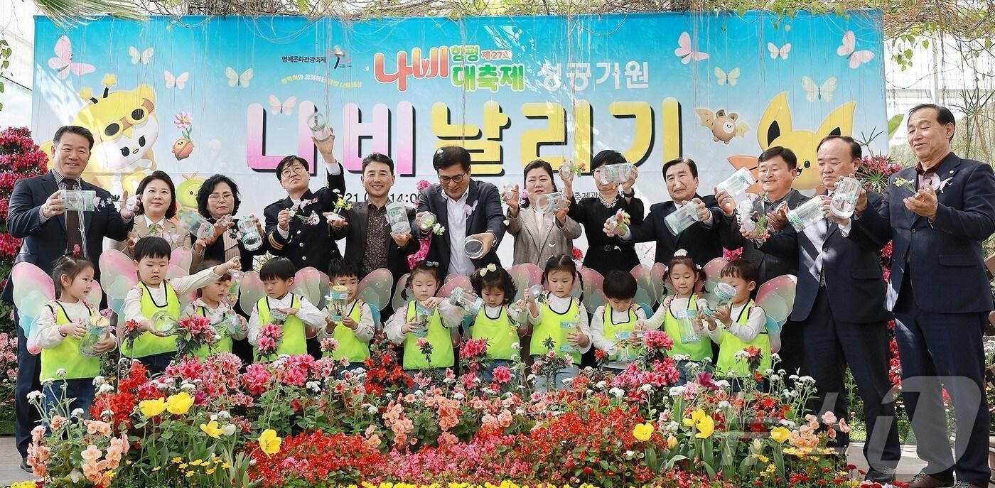이상익 군수 "모두가 최선 다해 관광객 맞을 준비 노력"전남 함평군이 21일 함평엑스포공원 수생식물원에서 제27회 함평나비대축제 성공기원 나비날리기 행사를 열고 있다.(함평군 제공.재배포 및 DB 금지)관련 키워드함평나비대축제서충섭 기자 주말 광주·전남 지방선거 출마자들 대거 출판기념회이정선 광주교육감 17일 조선대서 출판기념회관련 기사이상익 함평군수, 4대 종단 관계자와 겨울빛축제 성공 논의"비쌀 때 팔자" 민원 제기된 함평 황금박쥐상…대체 얼마길래?산도 바다도 제쳤다…MZ도 반한 요즘 국내여행 1순위는?이상익 함평군수 "1조 8천억 미래지역발전 사업 박차"전남 함평천 유휴부지 개발 마스터플랜 용역 착수