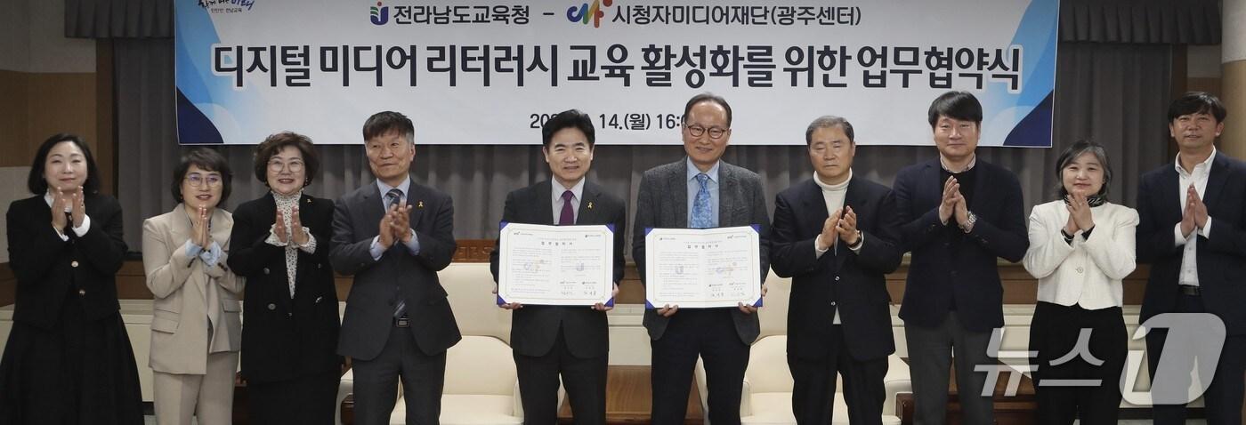전남도교육청과 시청자미디어재단 광주센터 관계자들이 업무협약을 마친 뒤 기념 사진을 찍고 있다.(전남교육청 제공, 재판매 및 DB 금지)